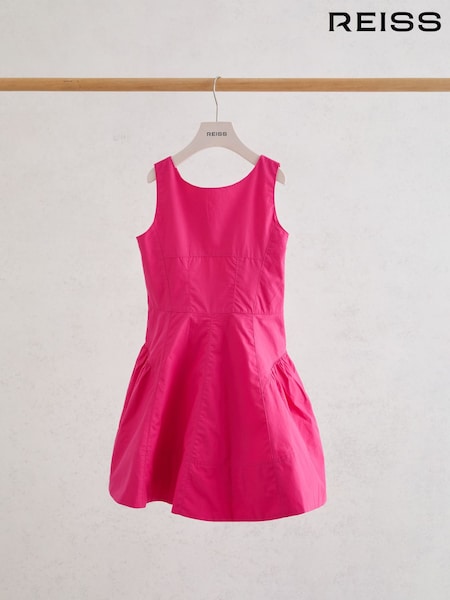 Reiss Pink Mandy 9-13 yrs Puff-Sleeve Cut-Out Back Dress