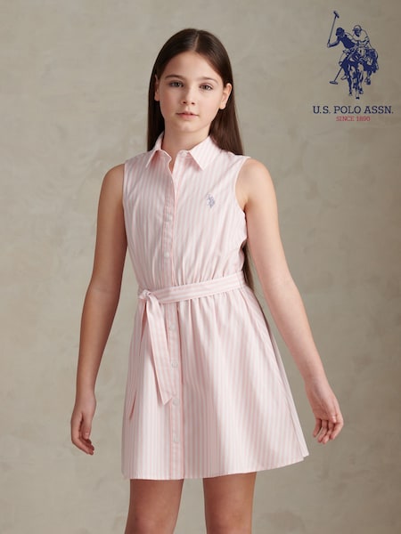 U.S. Polo Assn Pink Striped Sleeveless Shirt Dress