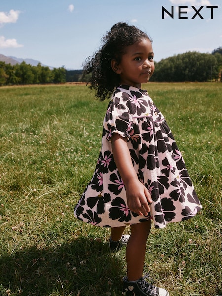 Monochrome Floral Jersey Dress (6mths-7yrs)