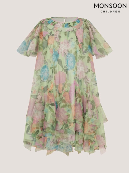 Monsoon Green Nessa Floral Ruffle Swing Dress