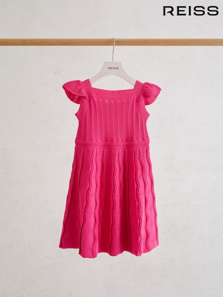 Reiss Pink Lindy 9-13 yrs Pointelle-Knit Flippy Dress