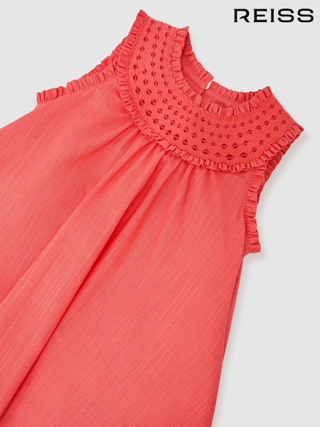 Reiss Pink Blake 13-14 yrs Linen-Blend Ric-Rac Trim Dress