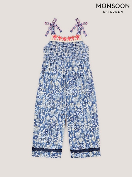 Monsoon Blue Mermaid Print Smocked Culotte Jumpsuit