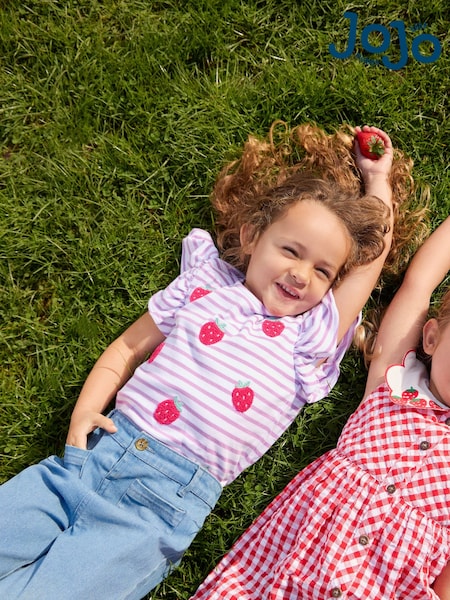JoJo Maman Bébé Rose Pink Broderie Collar T-Shirt & Printed Tulle Skirt Set