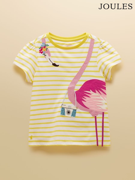 Joules Girls' Astra Yellow Applique Cotton T-Shirt