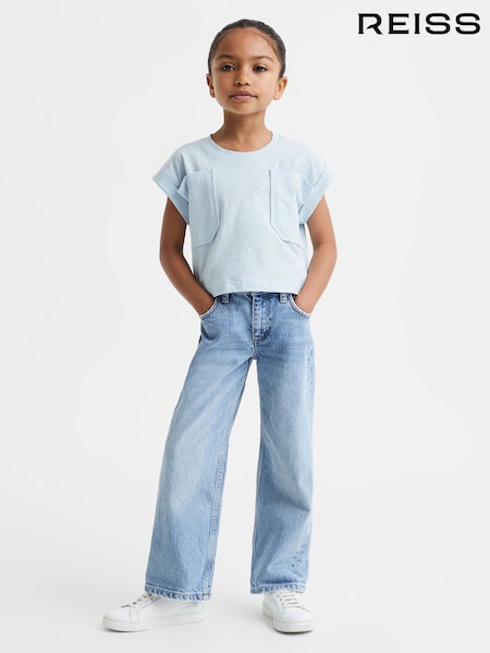 Reiss Blue Lulu 9-13 yrs Cropped Cotton Crew Neck T-Shirt