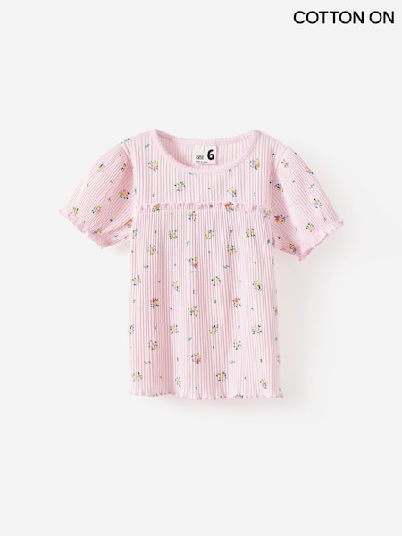 Cotton On Pink Posie Short Sleeve Babydoll Top