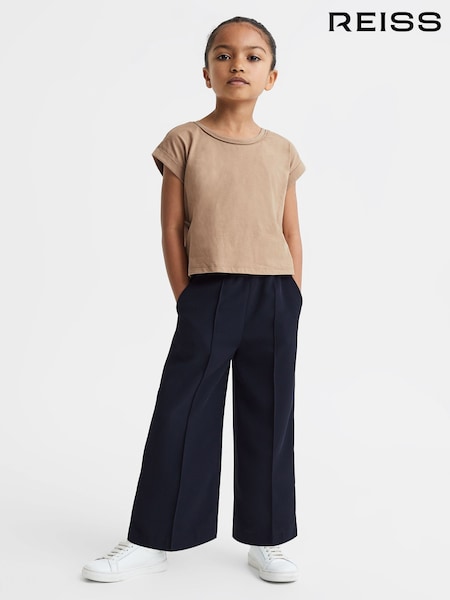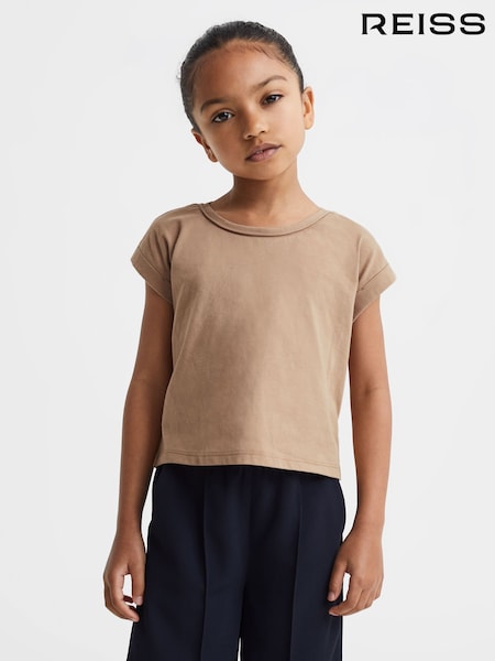 Reiss Camel Terry 4-9 yrs Cotton Crew Neck Crop Top
