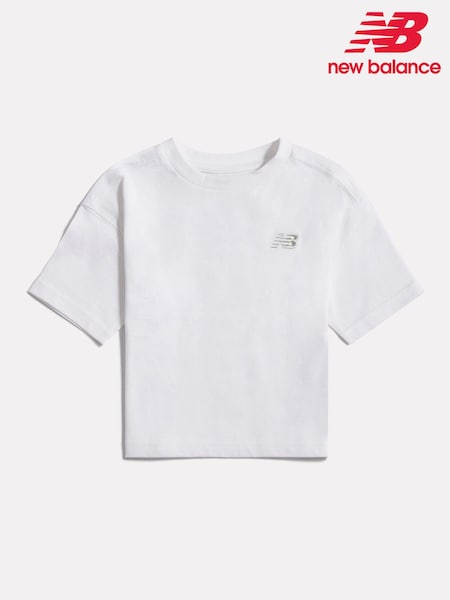 New Balance White Logo 100% Cotton Short Sleeve T-Shirt