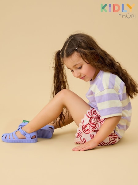 KIDLY by MORI Purple Striped Soft Cotton Oversized T-Shirt