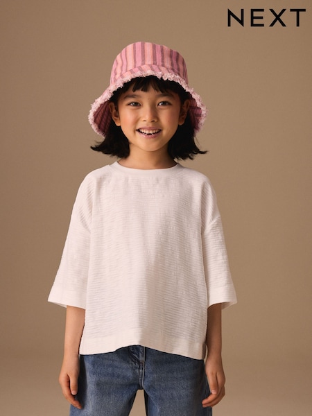 White Textured Oversized Boxy T-Shirt (3-16yrs)
