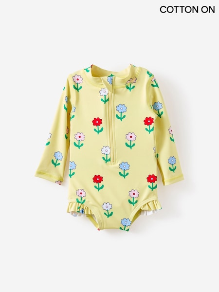 Cotton On Yellow Lucy Long Sleeve Ruffle Back Swimsuit