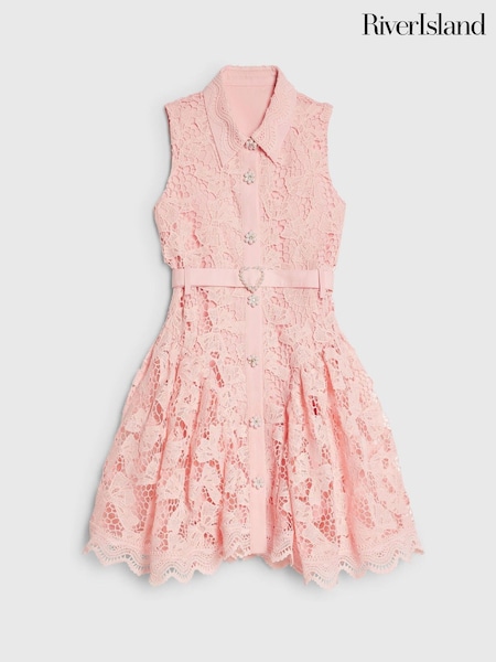 River Island Pink River Branded Sweatshirt & Wide Leg Joggers Set