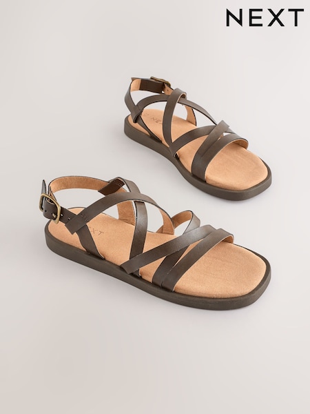 Chocolate Brown Wide Fit (G) Strappy Sandals