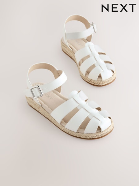 White Leather Woven Sandals with Touch Fastening