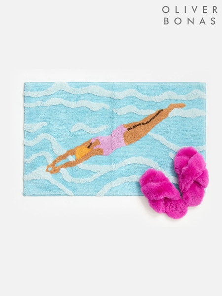 Oliver Bonas Blue Swimmer Rectangle Bath Mat