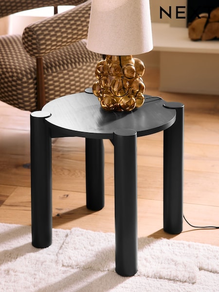 Black Tube Leg Wood Veneer Side Table