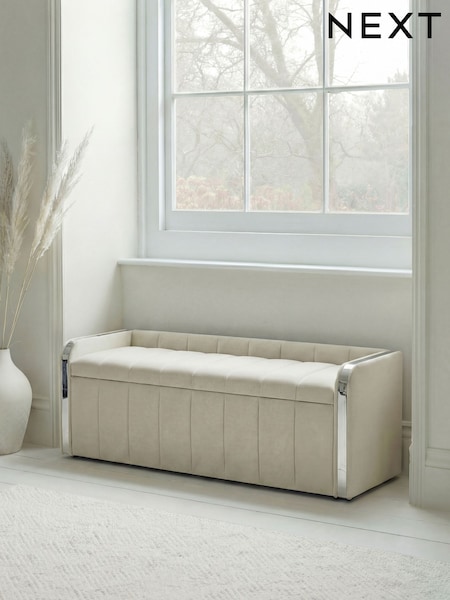 Relaxed Chenille Light Natural Myla Upholstered Ottoman Storage Bench