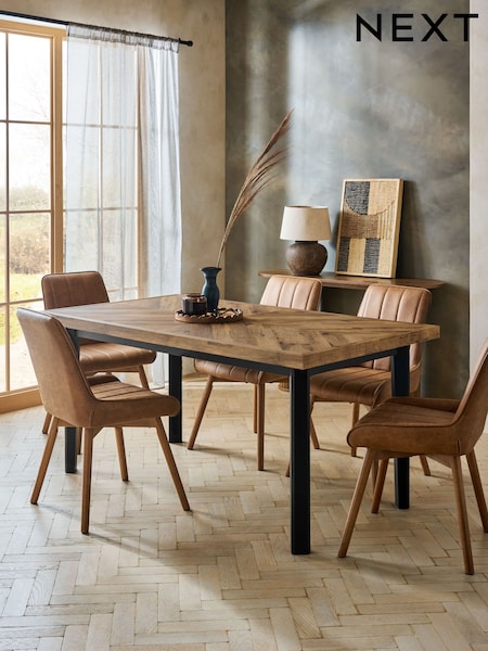 Dark Bronx Herringbone 4 to 6 Seater Extending Oak Effect Dining Table