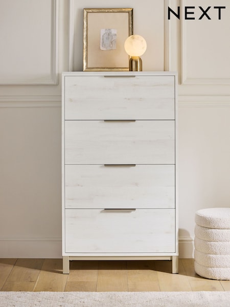 White Bronx Oak Effect 4 Drawer Tall Chest of Drawers