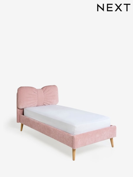 Smart Chenille Blush Pink Bow Single Bed Frame