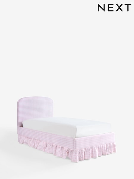 Opulent Velvet Gingham Pink Kids Matson Upholstered Single Bed