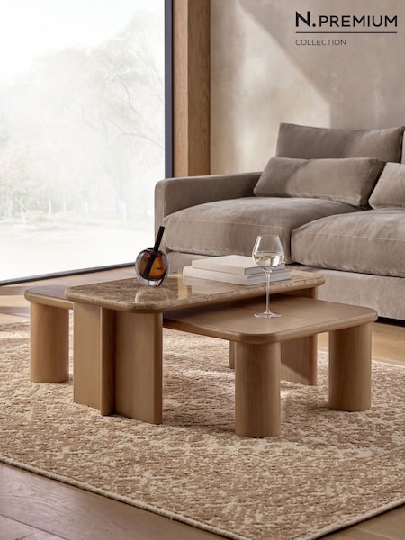 Natural N. Premium Aviano Oak Veneer and Marble Nest of 2, Rectangular Coffee Table