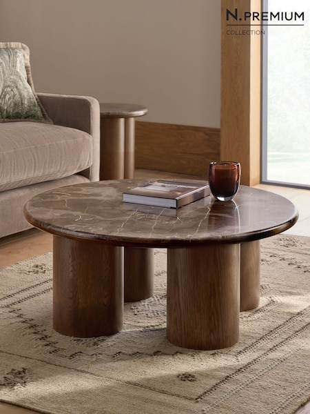 Dark Natural N. Premium Aviano Oak Veneer and Marble Large Coffee Table