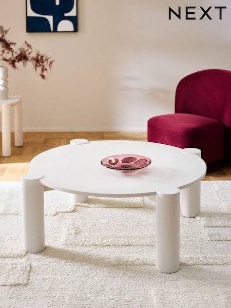 White Tube Leg Wood Veneer Coffee Table