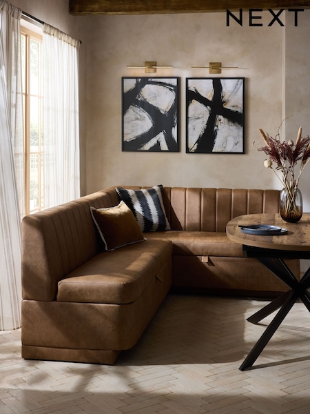 Easton Faux Leather Tan Easy Clean Anderson Storage Right Hand Corner Dining Bench