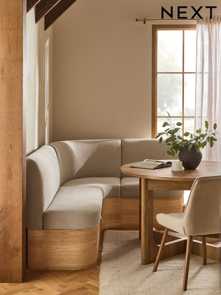 Natural Noa Curve Tweedy Plain Light Right Hand Corner Corner Storage Dining Bench