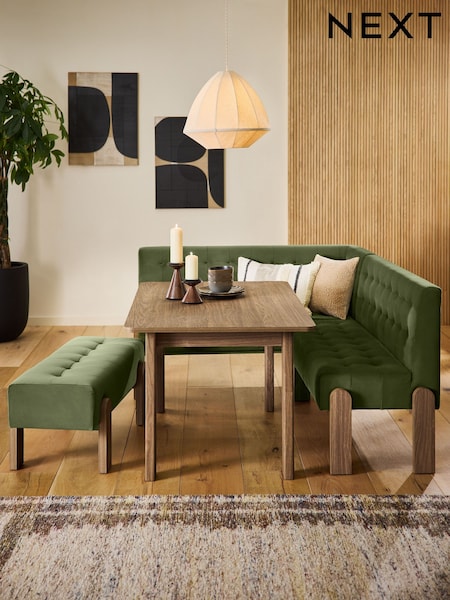 Soft Velvet Olive Green Beaumont Left Hand Corner Bench and Table Set