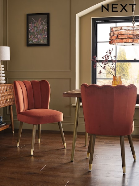 Set of 2 Soft Velvet Rust Brown Hamilton Quilted Dining Chairs