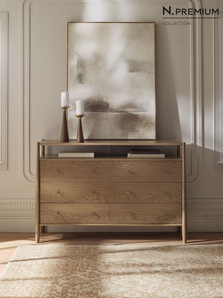 Mid Natural Farndon N. Premium Oak Veneer 6 Drawer Chest of Drawers