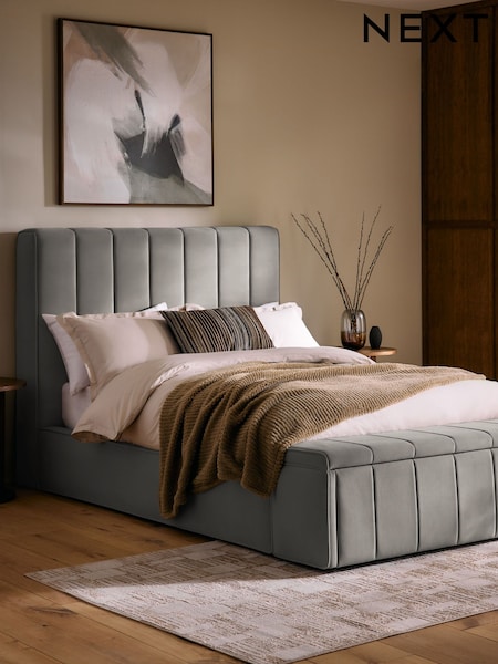 Soft Velvet Mid Grey Stanton Upholstered Ottoman Storage Bed Frame with Ottoman Bench