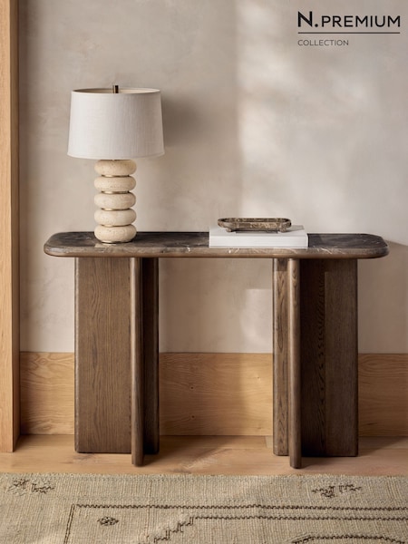 Mid Natural N. Premium Aviano Oak Veneer and Marble Console Table