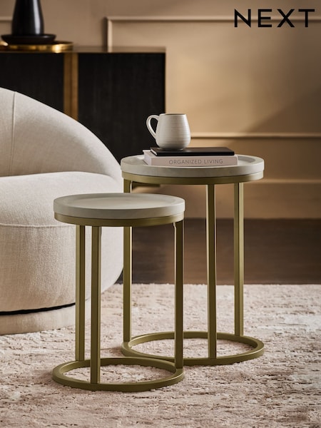 Light Grey Valencia Marble and Mango Wood Round Set of 3 Nest of Tables