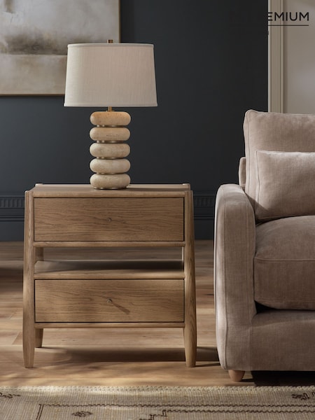 Mid Natural N. Premium Aviano Oak Veneer and Marble Sofa Side Table