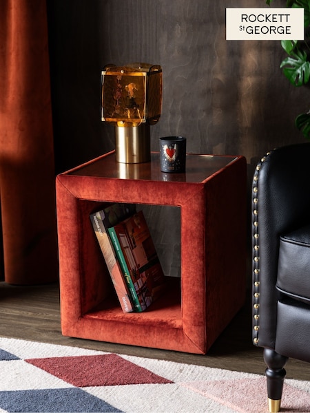 Rockett St George Luxe Needlecord Velvet Burnt Sienna Orange Starlet Side Table