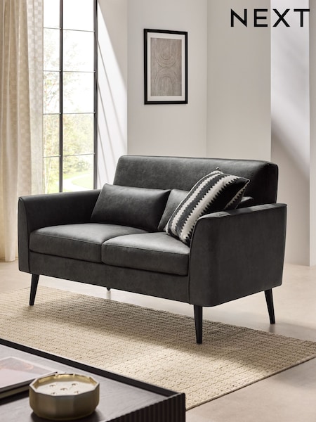 Dark Grey Monza Faux Leather Soft Linen Look Mila 2 Seater Small Sofa In A Box