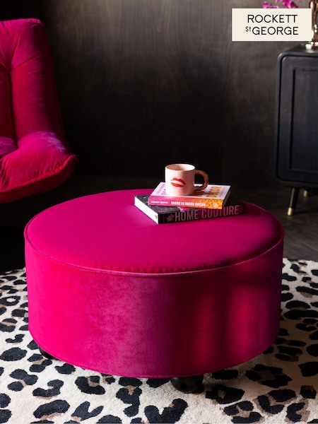 Rockett St George Luxe Needlecord Velvet Harrys Pink The Balls Large Stool