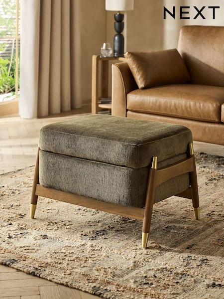 Plush Chenille Moss Green LLoyd Small Wooden Storage Footstool