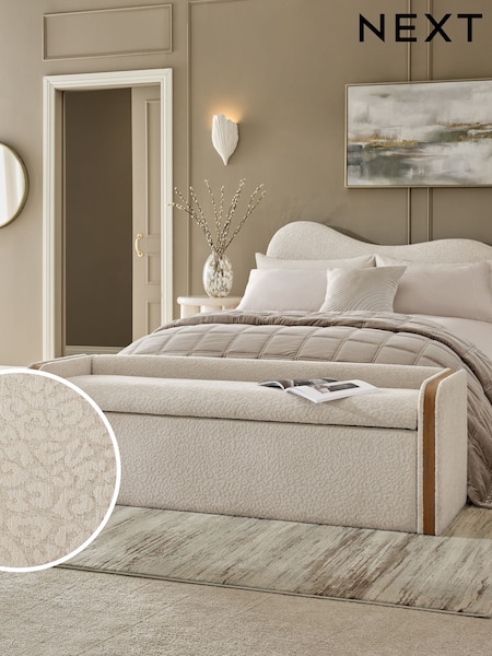 Linen Look Leopard Oyster Natural Myla Upholstered Ottoman Storage Bench