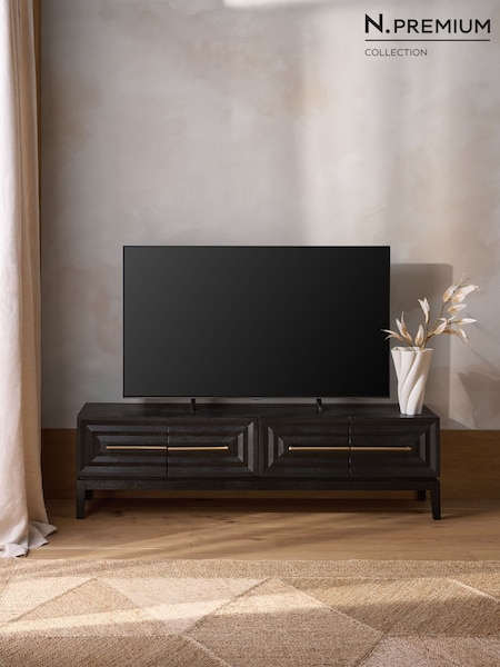 Rockett St George Black Mango Wood Up To 50 Inch Leopard Print TV Unit