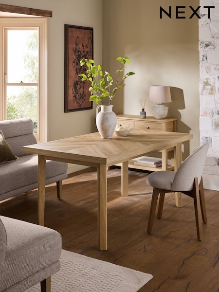 Light Natural Hayford 6 Seater Oak Effect Herringbone Dining Table