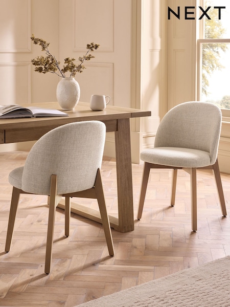 Set of 2 Chunky Weave Cream Preston Light Wood Leg Dining Chairs