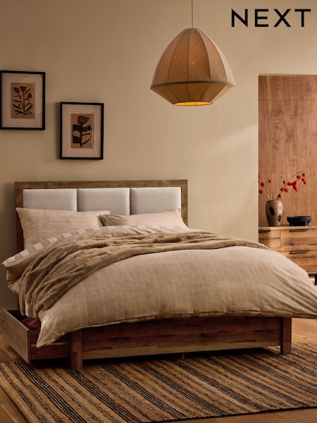 Oak Effect Bronx Wooden Two Drawer Storage Upholstered Bed Frame