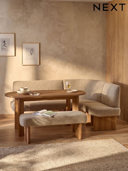 Tweedy Boucle Natural Mink Natural Oak Right Hand Corner Effect table