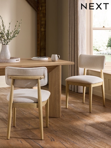 Set of 2 Tweedy Plain Light Natural Wrenley Light Wood Leg Dining Chairs