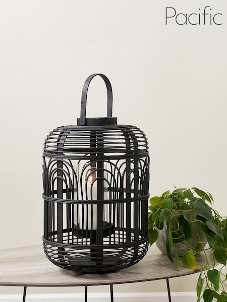Pacific Black Wooden And Glass Lantern Candle Holder